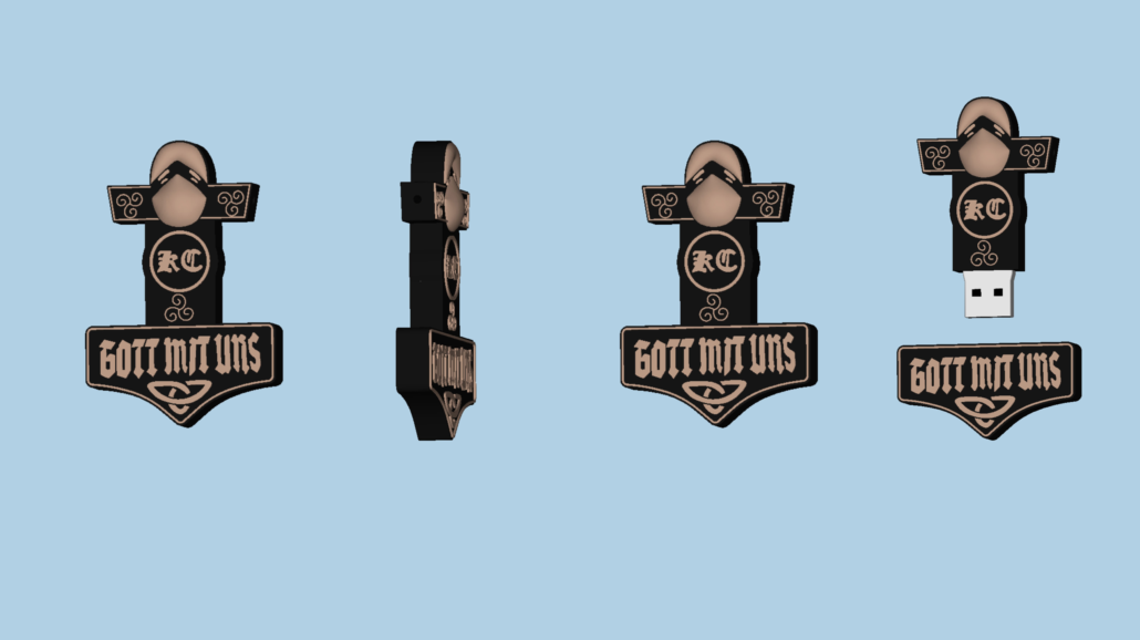 Na podstawie tego szablonu(ów) tworzymy w ścisłej konsultacji z Tobą pierwszy szkic jako projekt wstępny z kilkoma widokami z boku, aby zilustrować jak gotowa pamięć USB będzie wyglądać później.